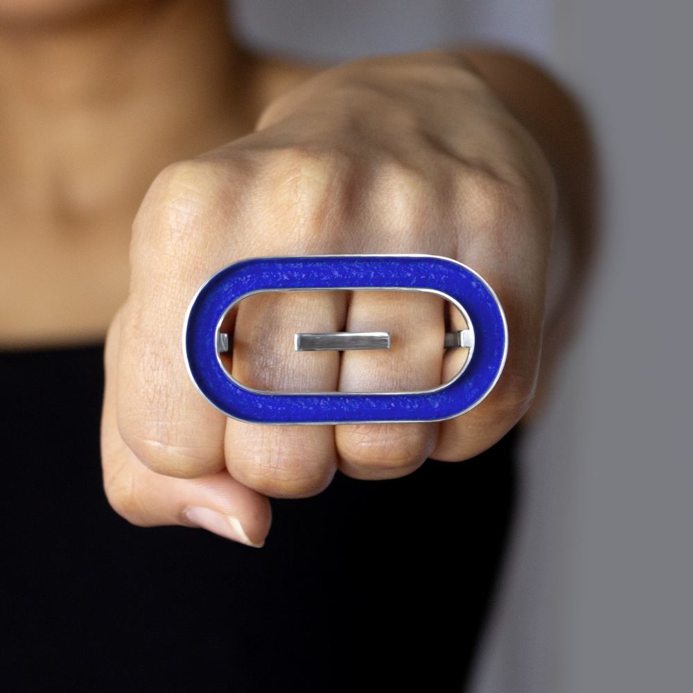 Recycled sterling silver, cobalt blue pigment. 52 x 31 x 12mm